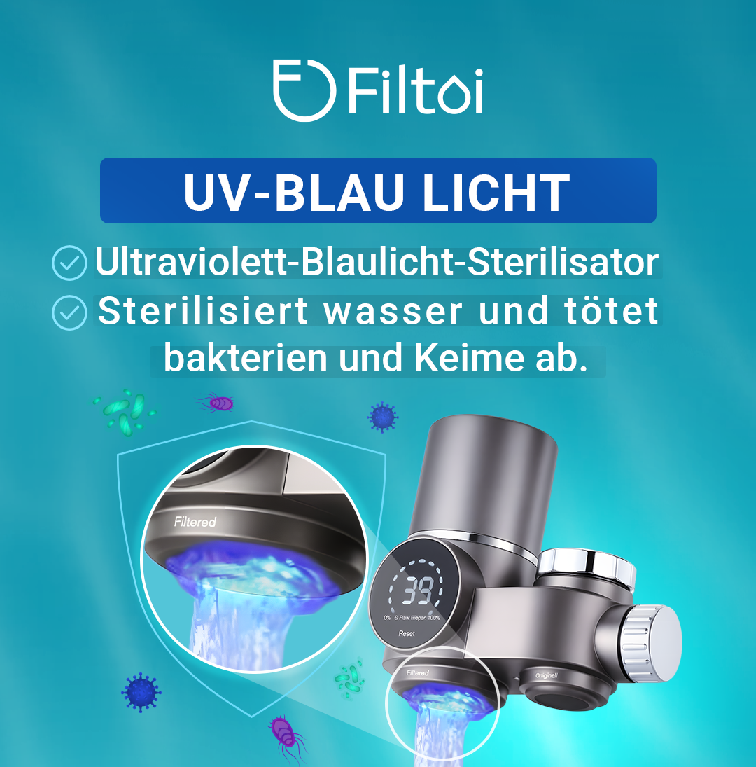 Der UV-Sterilisator nutzt ultraviolettes Licht, um Bakterien und Viren im Wasser abzutöten und so für saubereres Wasser im täglichen Gebrauch zu sorgen.